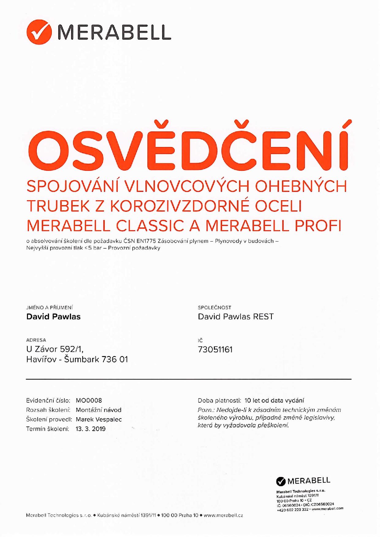 Osvědčení – Merabell